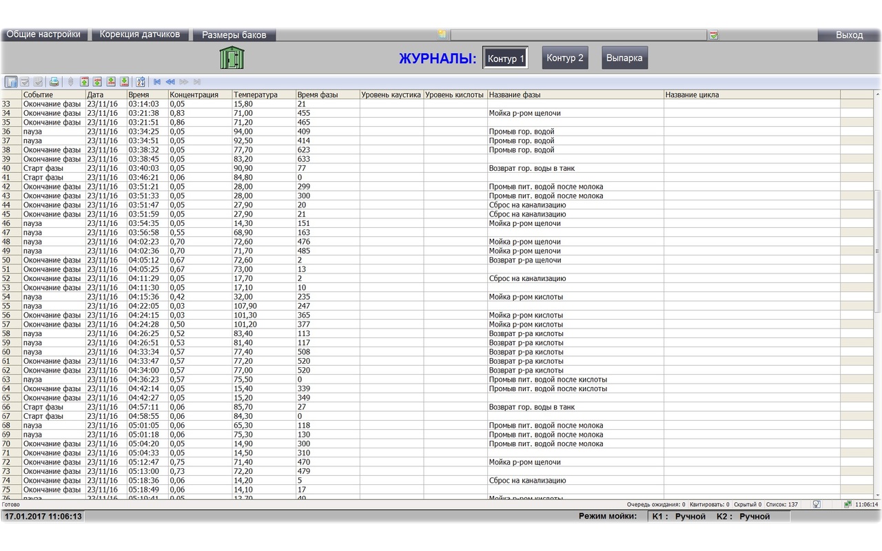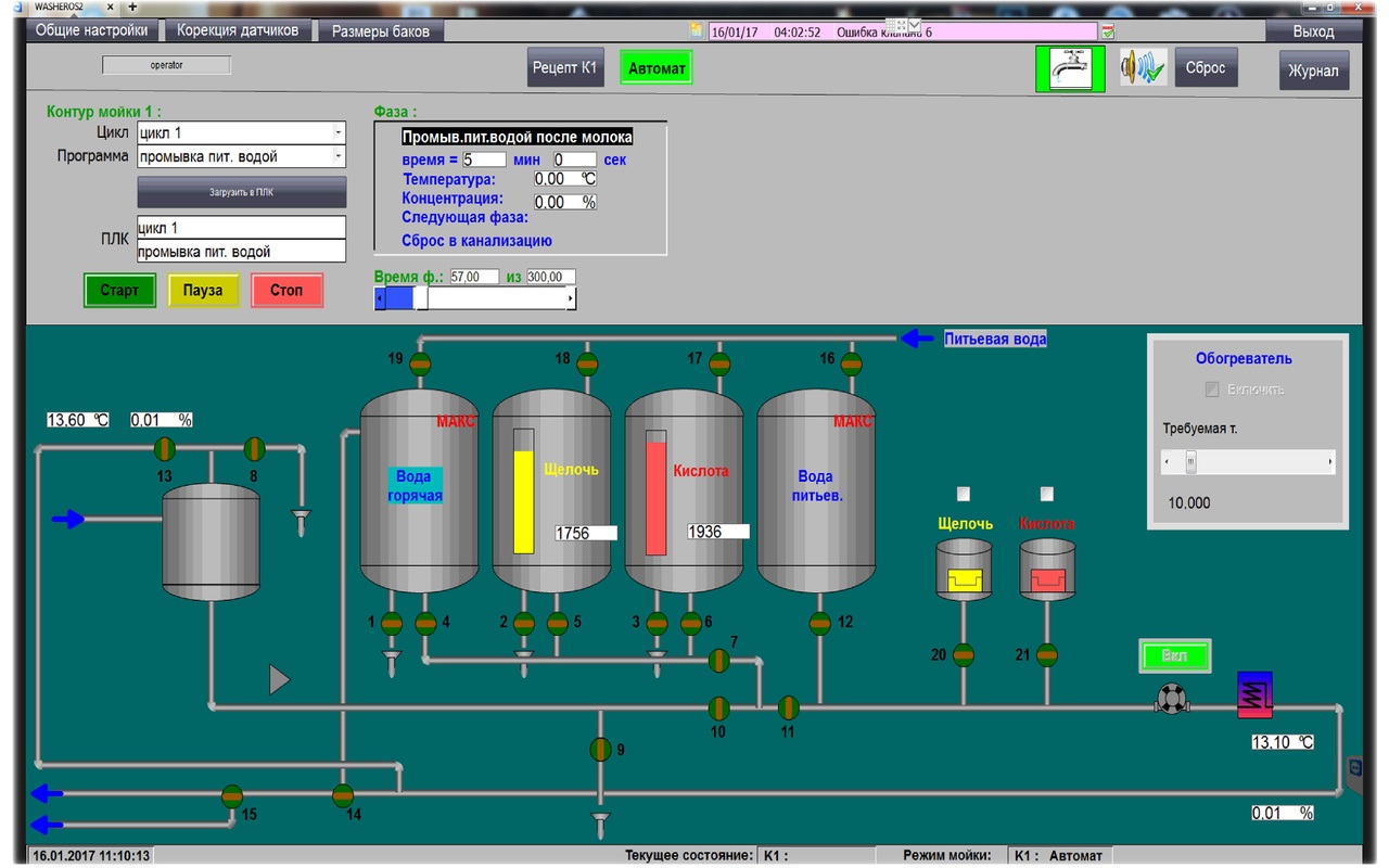 Основная задача: анализ оперативной информации, с возможностью ручного и автоматического выполнения любых необходимых действий большой и малой мойки.