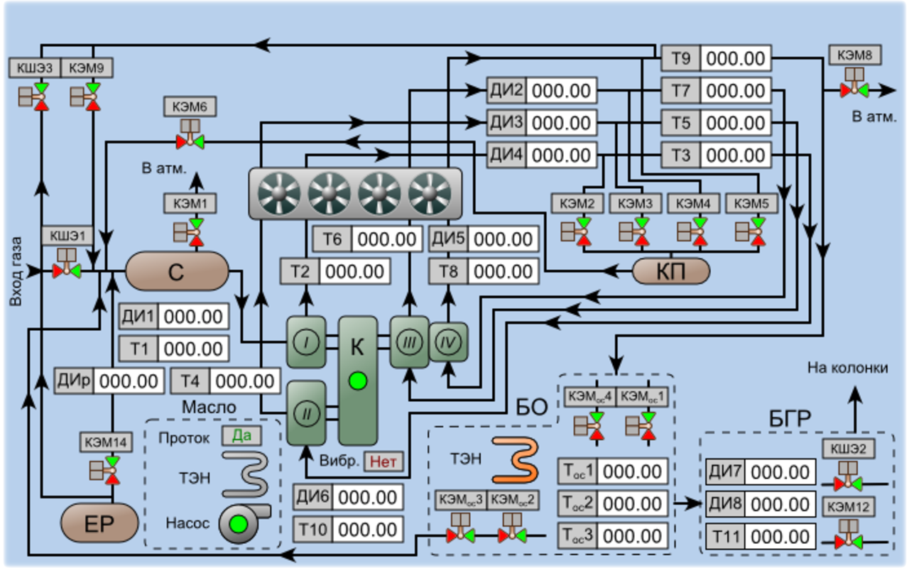 Разработана и введена в эксплуатацию система автоматического управления АГНКС с одним компрессором, прямоточной осушкой и газораспределительным блоком.